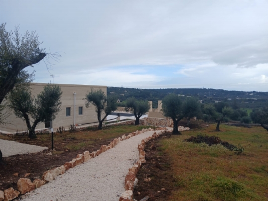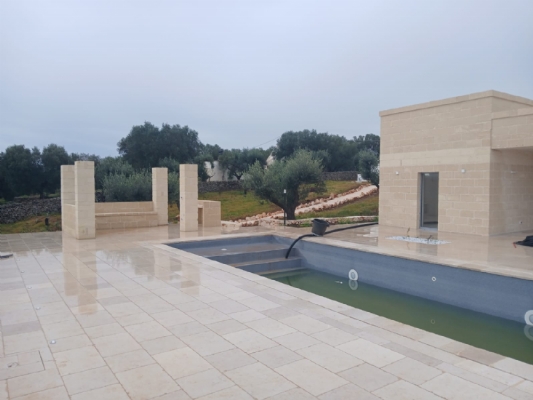 La "Stip immobiliare" propone in vendita villa di nuova costruzione con piscina in posizione panoramica ad Ostuni in contrada Foragno.L'abitazione principale è stata realizzata mescolando l’architettura tipica pugliese delle volte a botte in tufo con quella moderna; è composta da un' ampia zona living con cucina, due camere da letto, due bagni e veranda. Poco distante è presente una lamia che ospita una camera da letto con bagno.L’abitazione grazie alla sua posizione e al terreno di mq 6.000 che si estende intorno, garantisce privacy e tranquillità. La piscina posta in posizione dominante avanti all'abitazione dalla quale si gode di un’ottima vista sulle distese di ulivi circostanti va a completare il tutto.La casa è dotata di impianto di riscaldamento a pavimento, termoconvettori a sistema caldo/freddo, predisposizione per pannelli solari, cisterna e pozzo artesiano.